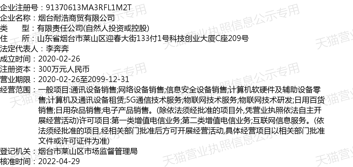 烟台市耐浩商贸有限公司泄漏公民身份信息和家庭住址