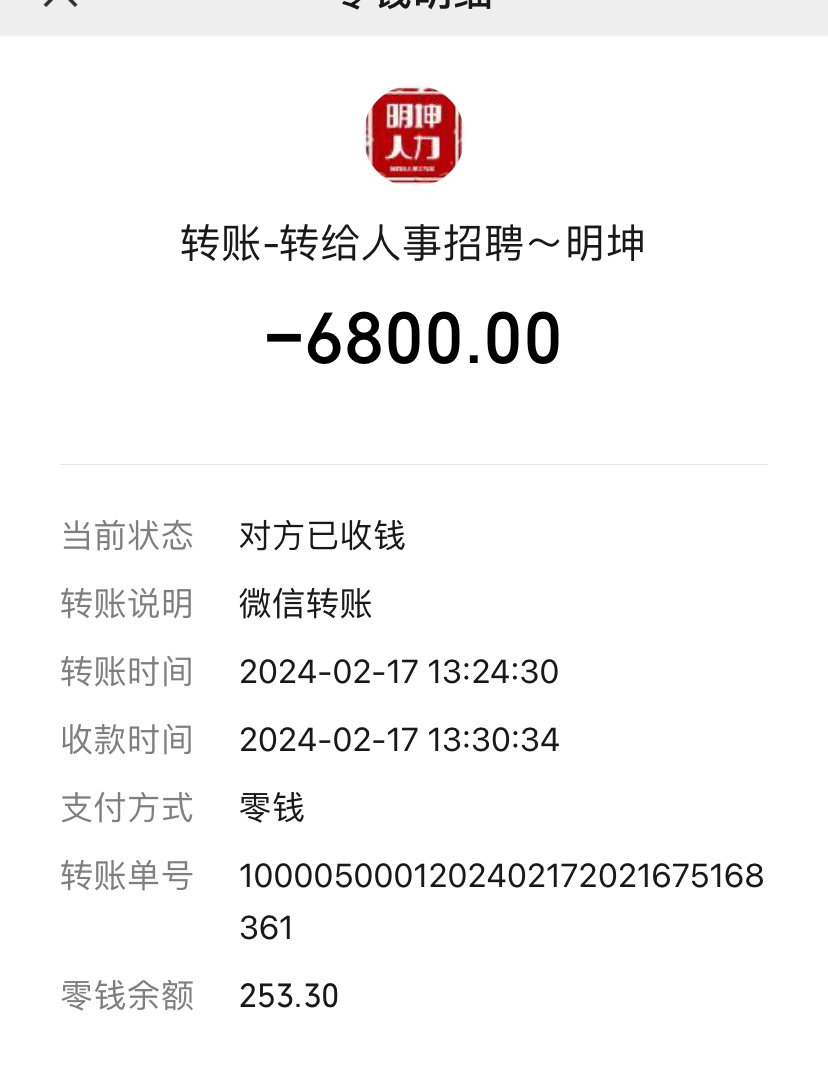 莱州市明坤人力有限公司未经山东省金莱矿业有限公司授权非法买卖岗位谋取利益 我是2024年2月通过网络得知莱州市金莱矿业有限公司招聘信息 咨询过后发现是莱州市明坤人力有限公司发布的广告 通过沟通明坤人力收取6800元费用并安排我到山东省金莱矿业有限公司从事放矿工但到了金莱矿业有限公司一直从事措施工 多次跟明坤人力有限公司法人陶俊龙沟通调换为放矿工 一直无果 要求明坤人力有限公司退还6800元