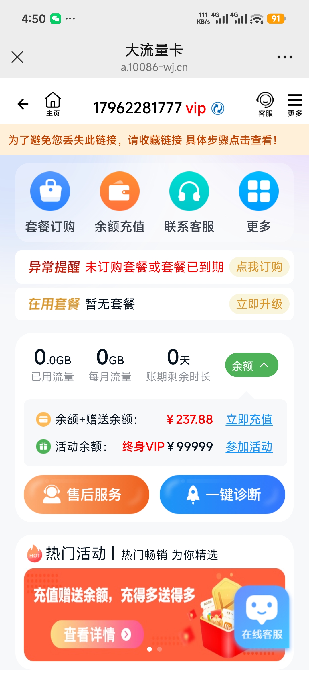 烟台氯化钠网络科技有限公司销售的流量卡无法使用,卡号17962281777,并且充值的费用200也无法退回。