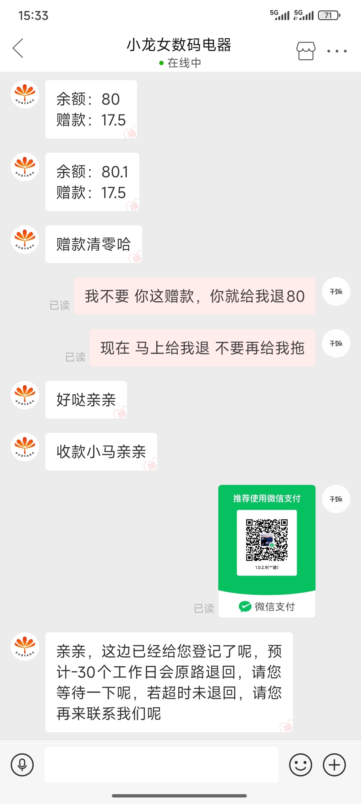 样,随后,我致电联系商家要求退